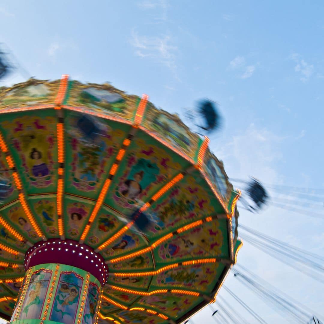 Wir sind jeden Tag dort gestanden und haben lange zugesehen und immer davon geträumt, damit zu fahren. Es sah so verlockend aus. Aber ich glaube wir waren zu klein (körperlich, da gab es immer so Zentimeter Latten am Rande der Fahrgeschäfte) oder trauten wir uns nicht? Das weiß ich gar nicht mehr so genau. Jedenfalls ist genau dort jemand aus dem Sitz rausgeflogen. Die Sicherung löste sich.  Einmal auf Beton aufgeklatscht und tod. Ein schneller Tod.