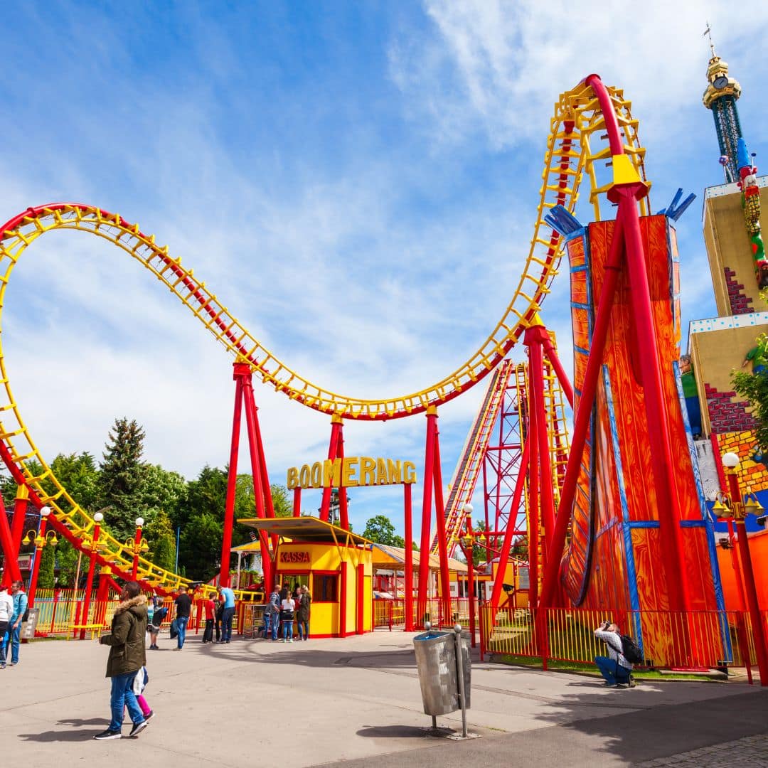 Eines Tages erfuhren wir von unseren Eltern, dass sich ein dramatischer Unfall im Prater ereignet hat und wir uns von genau solchen Fahrgeschäften fernhalten sollten und sowieso besser im grünen Prater bleiben sollten. Mittlerweile wussten sie ja, dass wir immer wieder auch im Würstelprater waren. Naja, was soll ich sagen. Die NEUGIER ist ein Hund! Sofort sind wir mit den Rädern losgerast zum Ort des dramatischen Geschehens. Es war eine Looping Achterbahn. Der heutige Boomerang!!! (keine Angst, heute scheint er komplett neu zu sein!) Damals war er total einzigartig und was Neues, der absolute Renner! Eine ganz neue Attraktion. Rückwärts die Rampe rauf, dann voll Schuss runter in drei Loopings und dann vorwärts die Rampe rauf und voll Schuss rückwärts die drei Loopings zurück. MEGA GEIL!