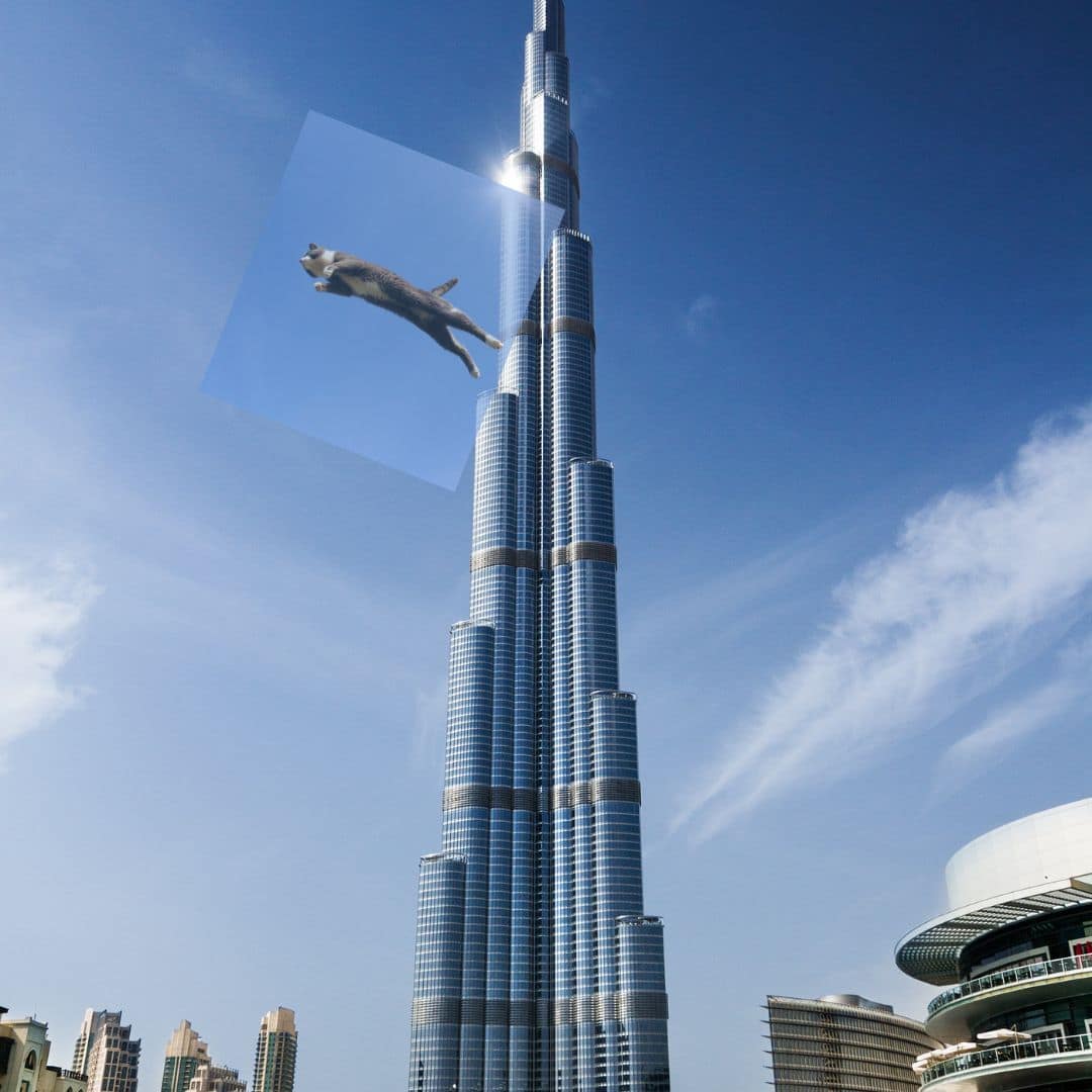 Eine Katze, die schon alle 7 Leben aufgebraucht hat und dennoch voller Vertrauen vom Burj Khalifa springt und selbstsicher auf allen 4 Pfoten landet. Denn notfalls ist der gepunktete Apfelschimmel kein Pferd, sondern auch ein Pegasus!