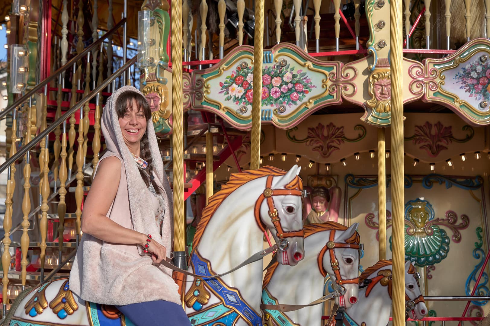Mein verspieltes Pippi-Wesen kommt in Situationen wie hier im Bild unten durch. Ein Ringelspiel in Lignano in der Einkaufsstraße. Ich muss dann einfach Spass haben und mein inneres Kind feiern!